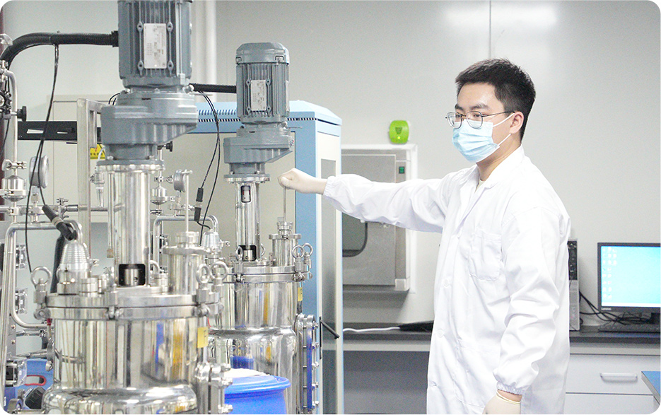 由發(fā)酵實驗室、檢測實驗室組成,配置有5L-50L-100L-1000L的不同體積的發(fā)酵罐,以及多種精密檢測儀器,進(jìn)行從0-1-10的發(fā)酵工藝放大,為工業(yè)化生產(chǎn)蘡定基礎(chǔ)條件。